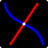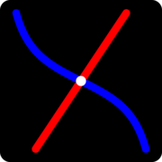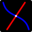 The logo is based on a simple mathematical construction: a straight line and a tangent curve that together form a stylized X with an inner flowing structure.